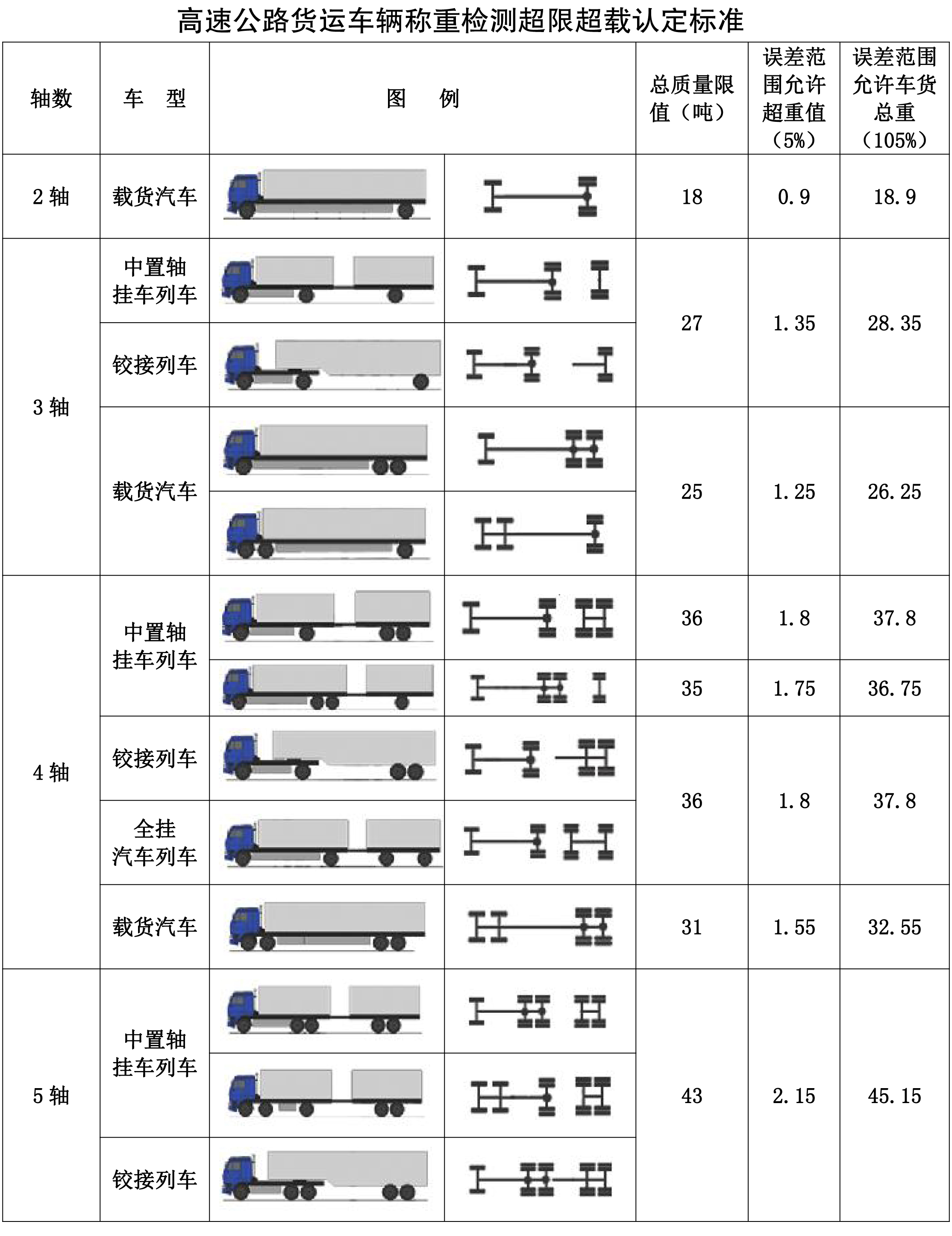 1. 2020年1月1日起,全国所有封闭式高速公路收费站对货运车辆都将实行入口不停车称重检测(允许±5%误差),全面禁止违法超限超载车辆驶入高速公路。在高速公路入口实施入口称重检测,超载货车将被高速公路管理经营单位劝返。