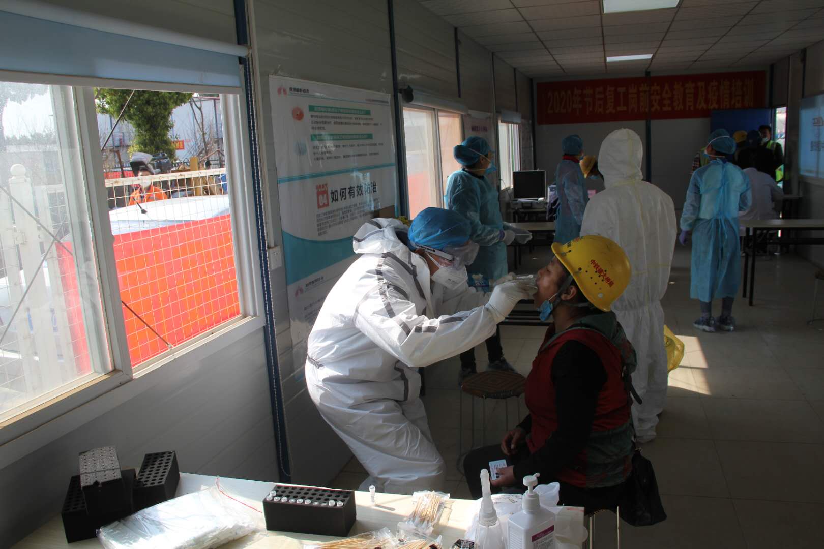2020年3月6日,中国铁建大桥工程局集团有限公司宜石高速公路项目经理部积极对接石林县人民医院,对项目一线员工及项目建设工人进行了全覆盖核酸检测,复核复工人员身体健康状况,据3月9日石林县人民医院出具检测结果,宜石项目检测人员均无异常情况,为项目建设复工提供了一份安全保障。昆明宜石公司疫情防控领导小组经过开展切实有效的疫情防控工作,目前实现了项目经理部管理人员88人,各节段工人427人复岗,建设项目全面复工。