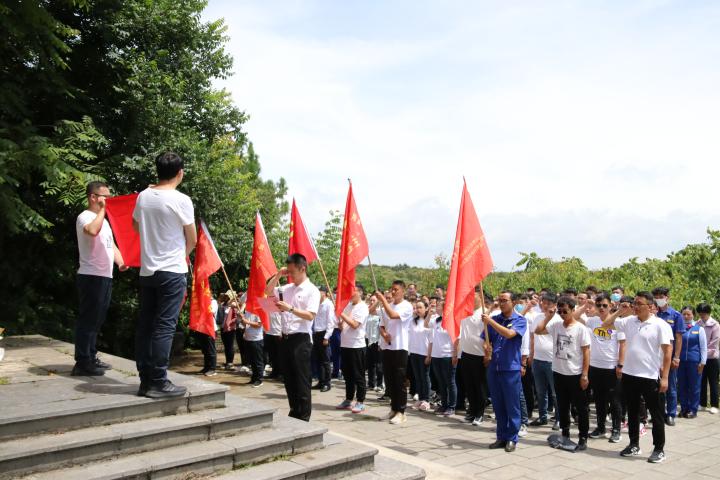 在圭山纪念塔前,党委书记、董事长马东山带领全体党员,面对鲜红的党旗,重温入党誓词。在红色革命教育纪念广场前,五个党支部高唱红色歌曲,激发昂扬斗志。伴随着嘹亮的歌声,全体党员一起踏着革命先烈的足迹,徒步登上圭山峰顶,用脚步丈量峥嵘岁月的艰辛,用心灵去感触长征途中革命先烈的坚定信念。