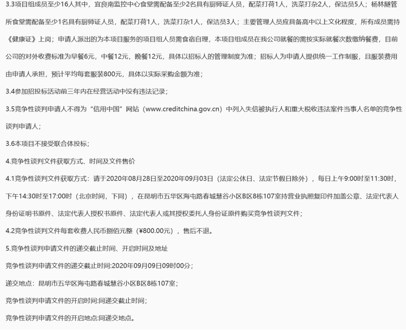 昆明东南绕城高速公路开发有限公司宜良南监控中心食堂、杨林隧管所食堂服务及保洁服务竞争性谈判公告