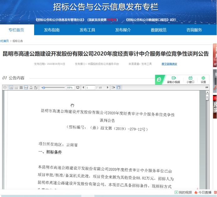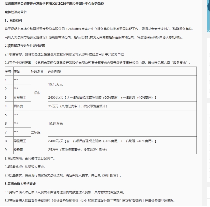 昆明市高速公路建设开发股份有限公司2020年度经责审计中介服务单位竞争性谈判公告