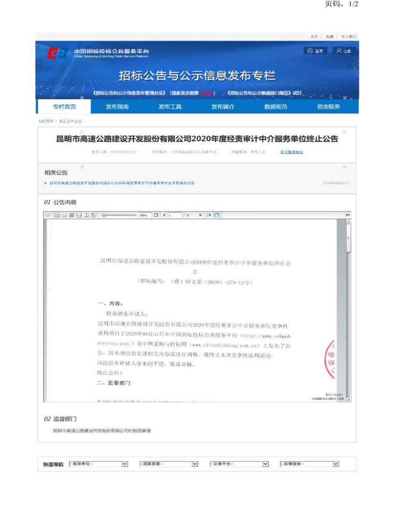 2、中国招标投标公共服务平台发布