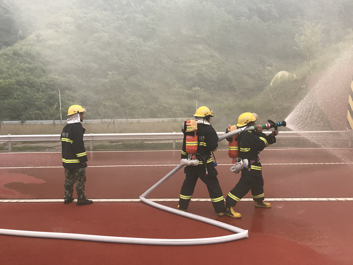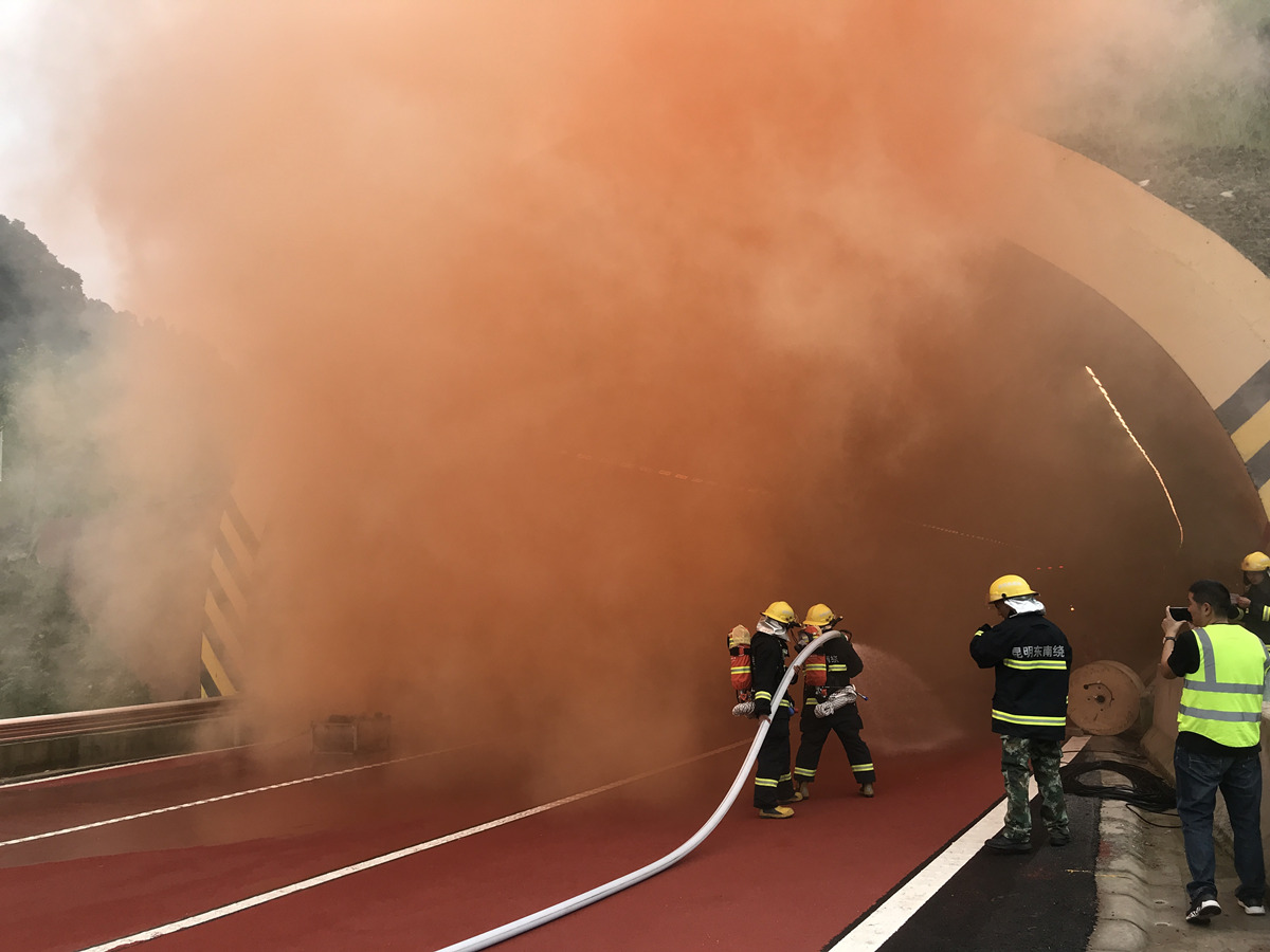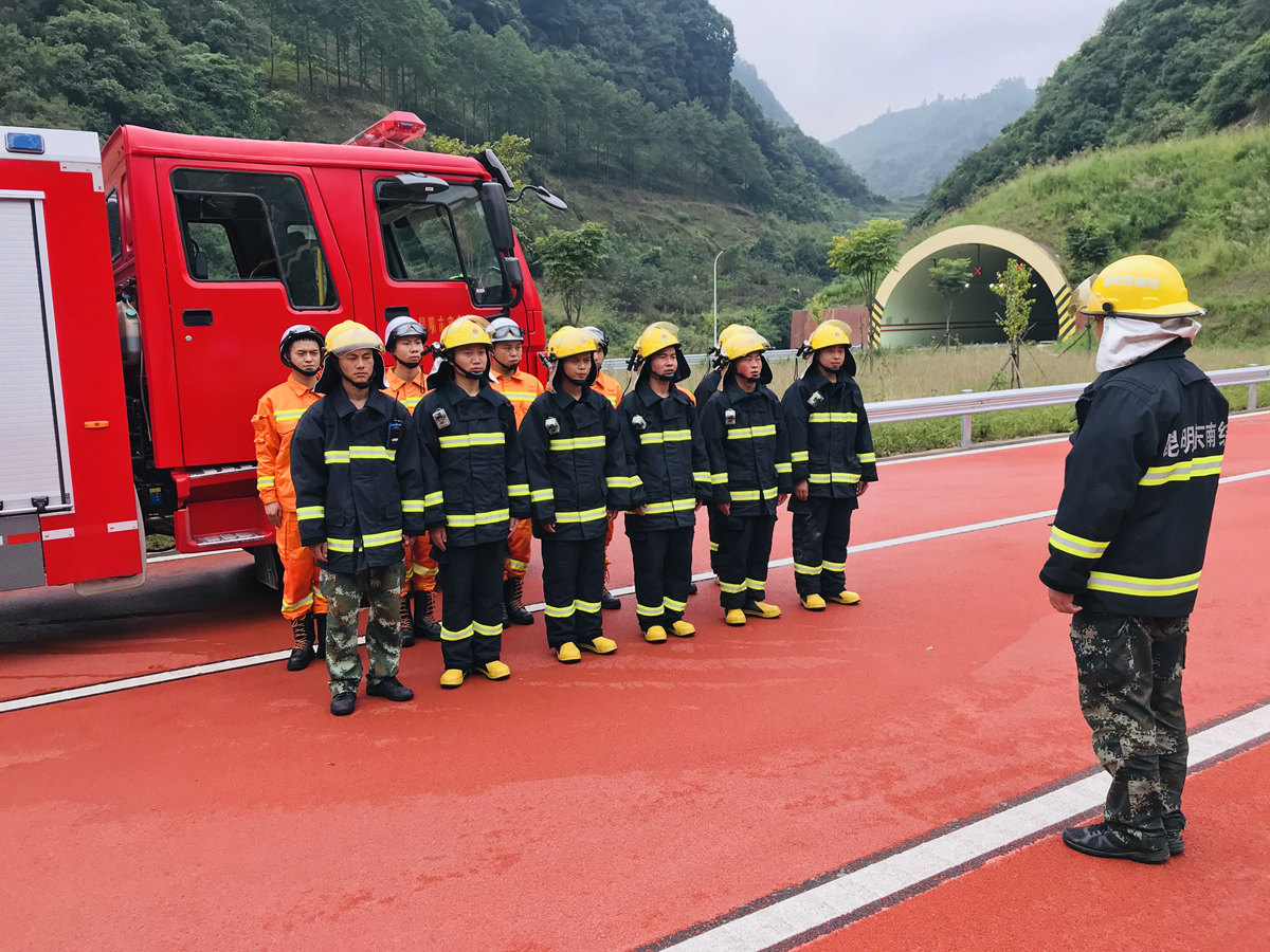 为保障杨林特长隧道左幅于9月30日24时顺利通车及后续运营安全,东南绕公司于9月29日上午11:30组织专职消防救援队及相关部门开展杨林特长隧道交通事故(火灾、人员被困情景)应急救援演练,演练邀请了交警、路政、及养护等单位。