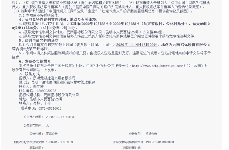 昆明元朔建设发展有限公司选聘罗衙管理用房及办公楼窗帘供应商(三次)竞争性谈判公告