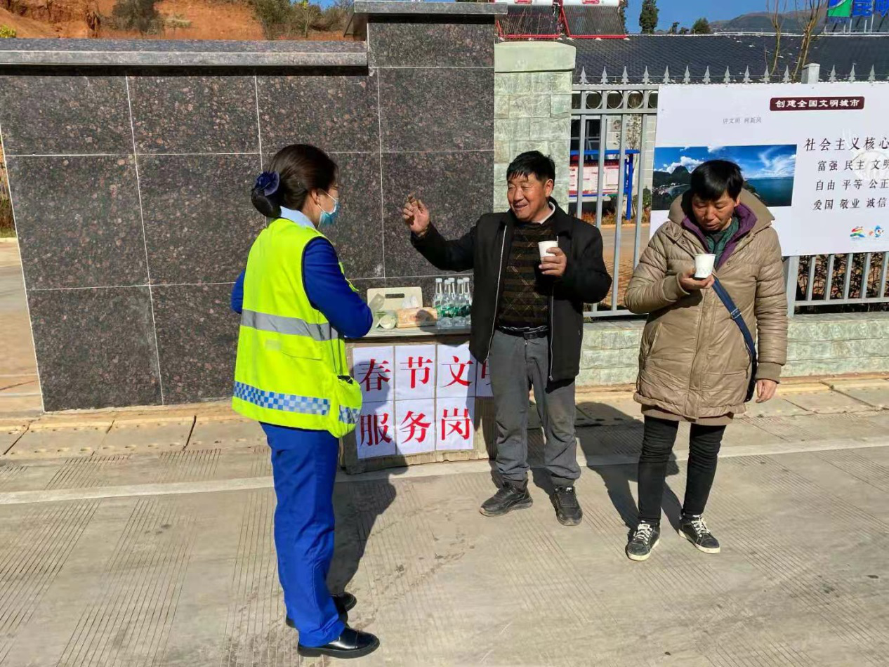 为给过往的司乘人员营造一个舒心温暖的通行环境,当班人员在各站点安排设置了“春节文明服务岗”值守点,为有需要的司乘人员提供热水、纸巾、急救箱等热心服务,并及时对遇到问题的司机提供帮助,让广大司乘人员在新年到来之际感受到家的温暖。