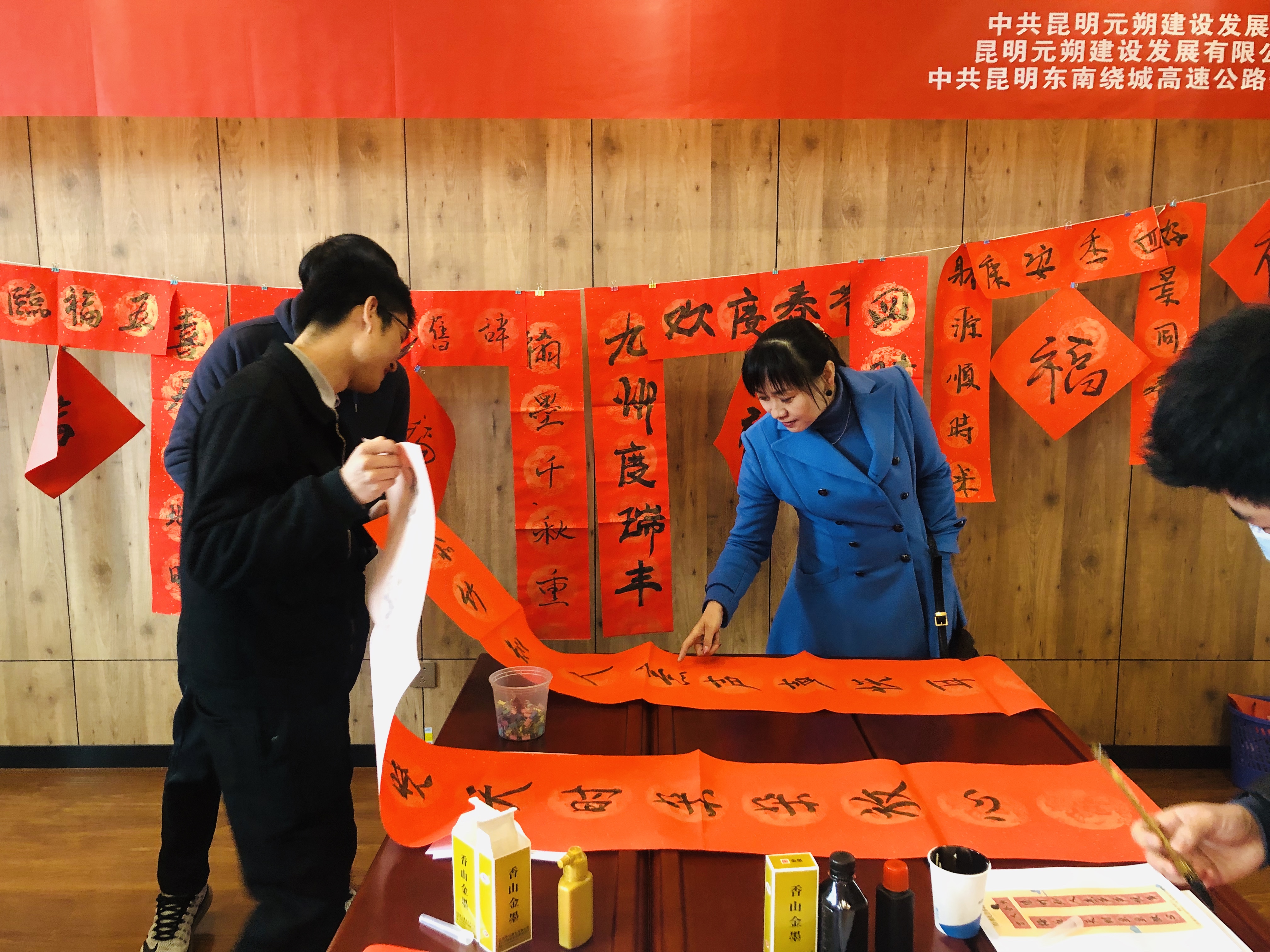 公司干部职工热情高涨,以贴窗花、贴福字和悬挂中国结等形式,对行政办公点和各一线收费站点进行节前装点,积极参与到为公司增添春节喜庆气氛中,感受传统文化独特魅力,营造尊重传统节日、热爱传统节日、参与传统节日的浓厚氛围。