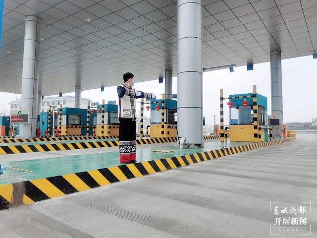 一对对高悬的红灯笼、一身鲜艳喜庆的彝族服装、一双满含笑意的眼睛、一声清亮的“您好!”…… 宜石高速公路大叠水收费站满满的春节气氛。