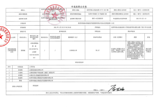 昆明市高速公路建设开发股份有限公司办公区域装修(二次)中标结果公示