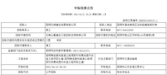 昆明南连接线高速公路周家村收费站提升改造工程项目土建中标结果公示