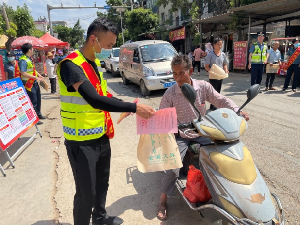 为深入宣传贯彻省、市关于加强安全生产工作的系列决策部署和重要指示精神,6月2日,东南绕公司会同昆石交警大队、昆明公路路政一大队以第20个全国“安全生产月”为契机,到东南绕高速沿线狗街镇市集开展“落实安全责任 推动安全发展”为主题的安全生产月宣传活动。活动通过悬挂横幅、设置宣传展板、发放宣传资料、现场讲解等形式向过往群众宣传交通安全、消防安全、疫情防控等知识及相关法律法规。同时在东南绕全线情报版、电子屏、各收费站悬挂横幅等方式宣传交通安全、消防安全、疫情防控等知识和法律法规。