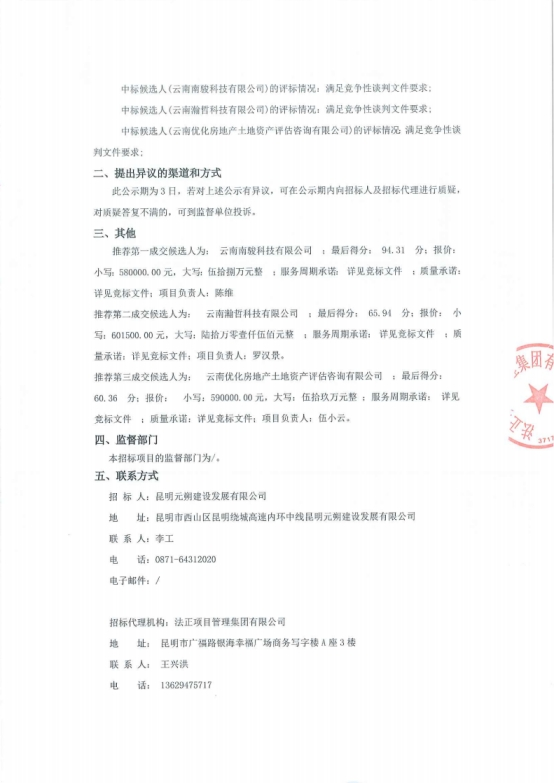 昆明元朔建设发展有限公司选聘昆明南连接线高速公路罗衙立交项目用地报批代理服务单位项目评标结果公示