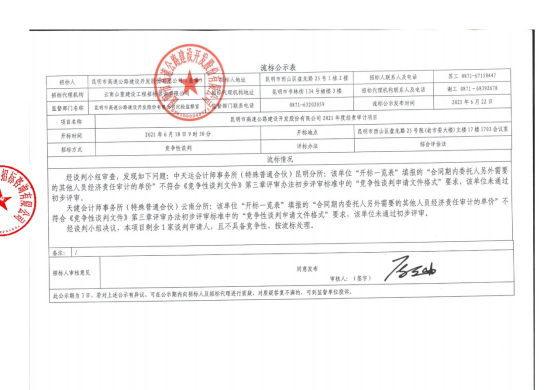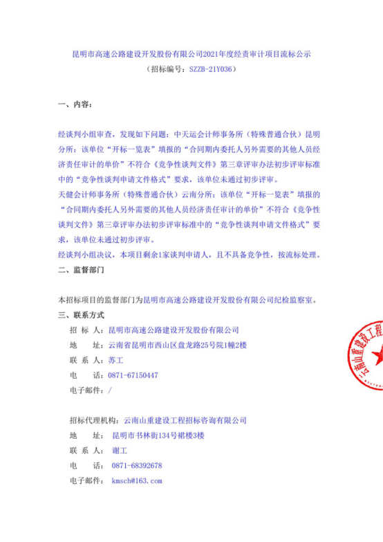 昆明市高速公路建设开发股份有限公司2021年度经责审计项目流标公示