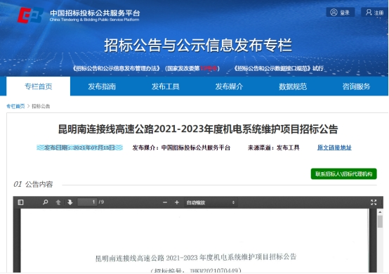 昆明南连接线高速公路2021-2023年度机电系统维护项目招标公告