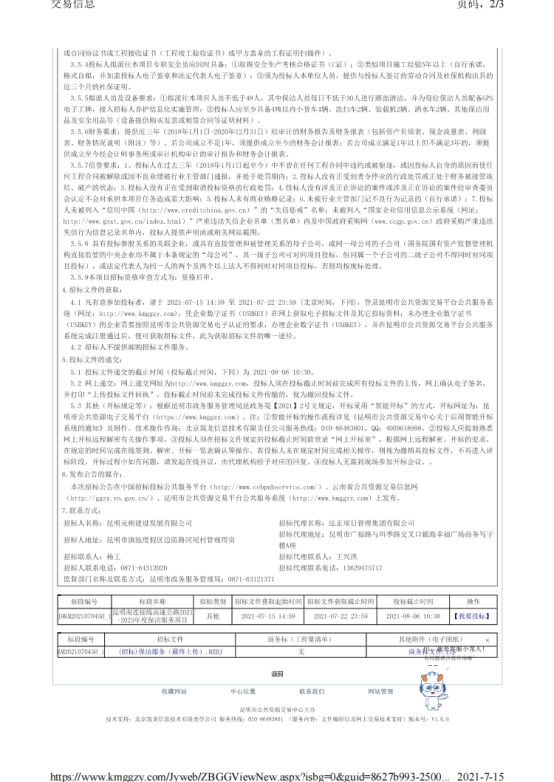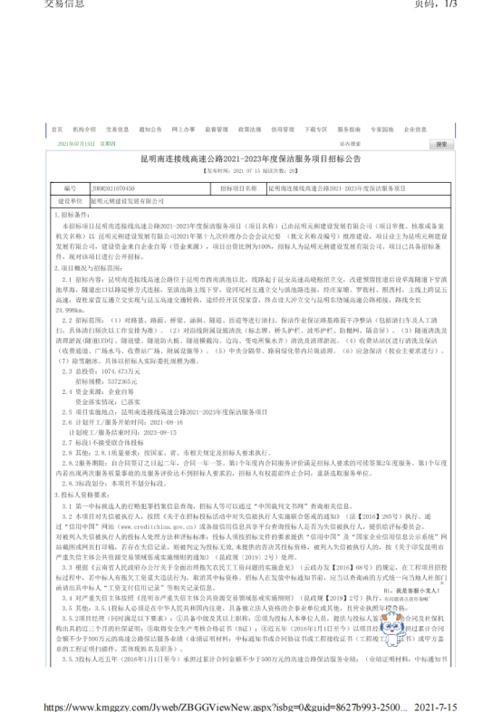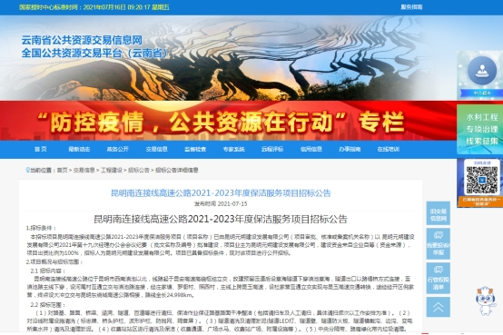 昆明南连接线高速公路2021-2023年度保洁服务项目招标公告