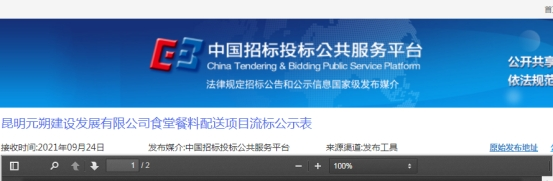昆明元朔建设发展有限公司食堂餐料配送项目流标公示