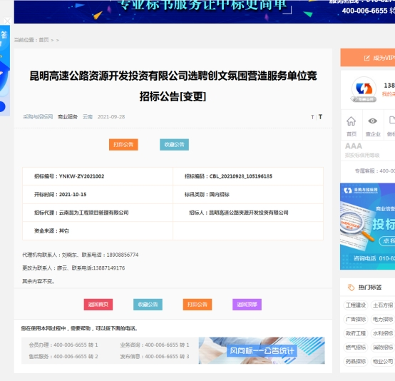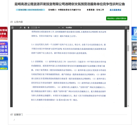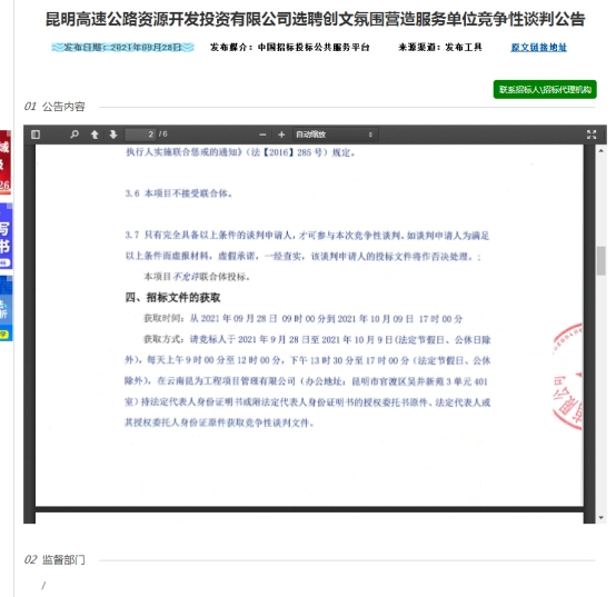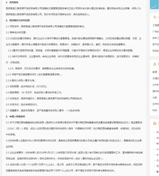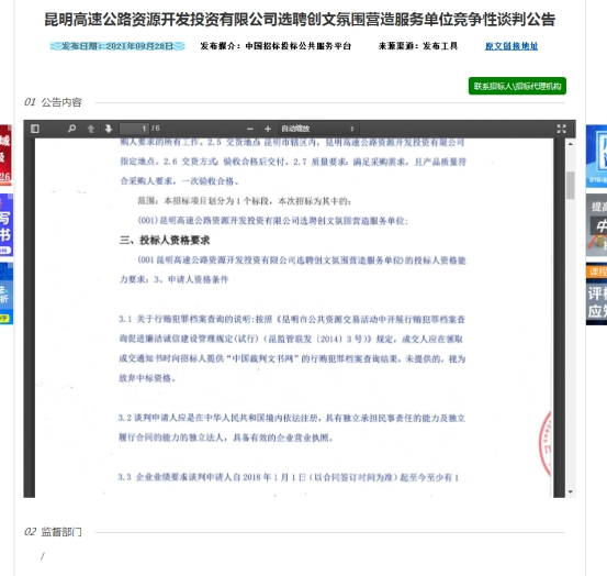 昆明高速公路资源开发投资有限公司选聘创文氛围营造服务单位项目竞争性谈判公告