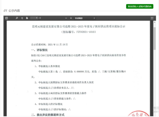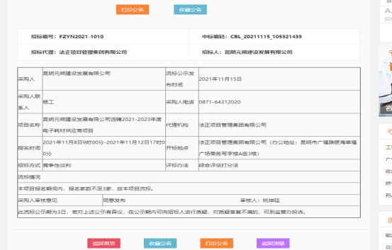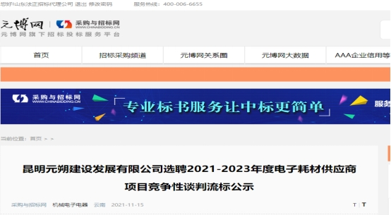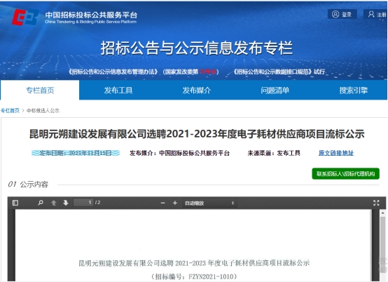 昆明元朔建设发展有限公司选聘电子耗材供应商竞争性谈判项目流标公示