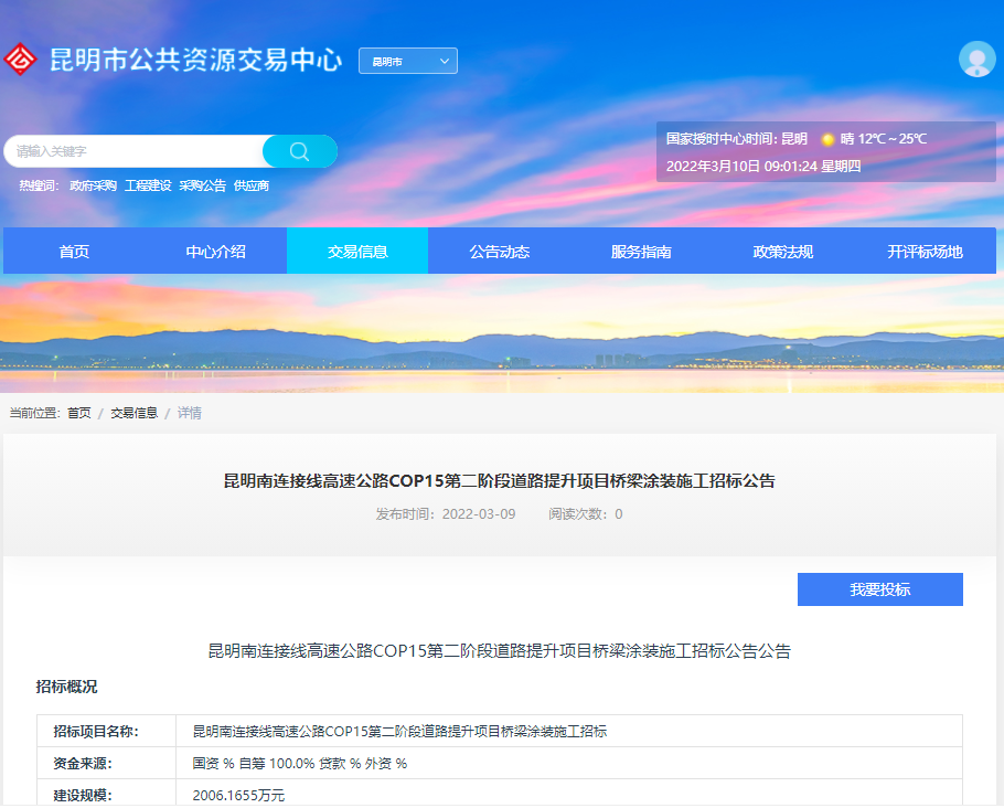 昆明南连接线高速公路COP15第二阶段道路提升项目桥梁涂装施工招标公告【昆明市公共资源交易中心(新平台),点击可查看】