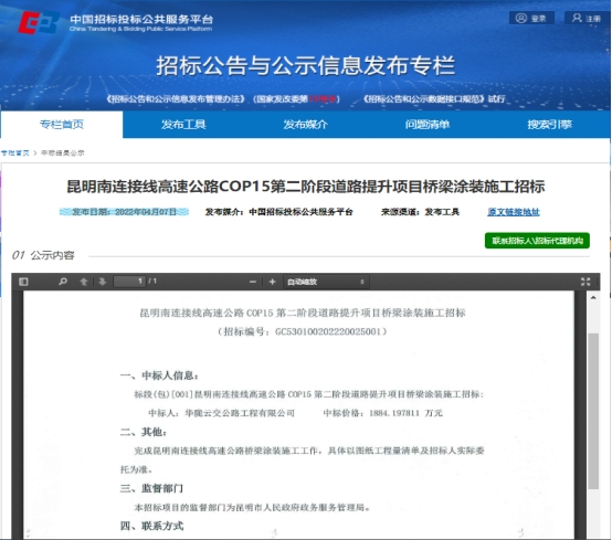 昆明南连接线高速公路COP15第二阶段道路提升项目施工项目中标结果公示(中国招标投标公共服务平台,点击可查看)