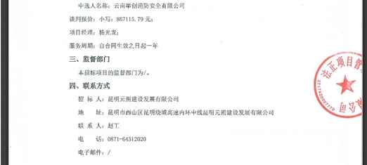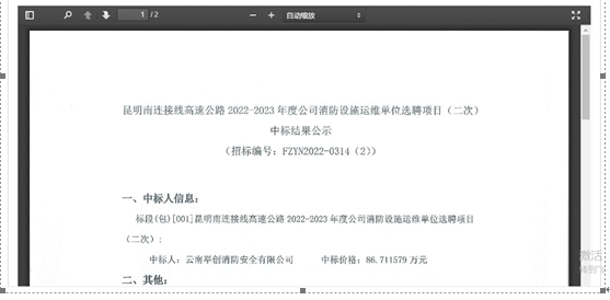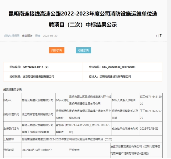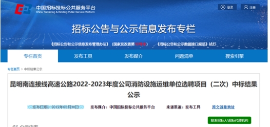昆明南连接线高速公路2022-2023年度公司消防设施运维单位选聘项目中标结果公示