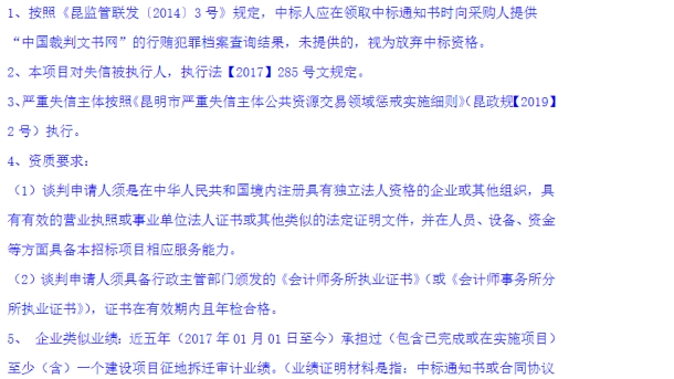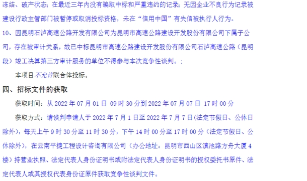 石林至泸西高速公路(昆明段)土地征用及拆迁补偿审计竞争性谈判公告