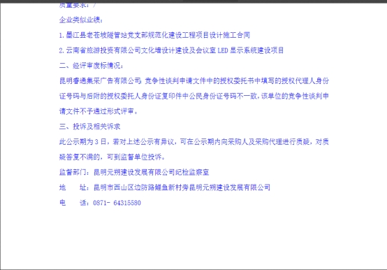 昆明元朔建设发展有限公司企业文化墙制作安装服务项目评标结果公示