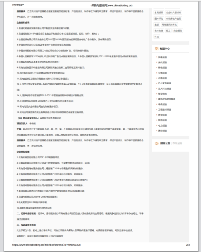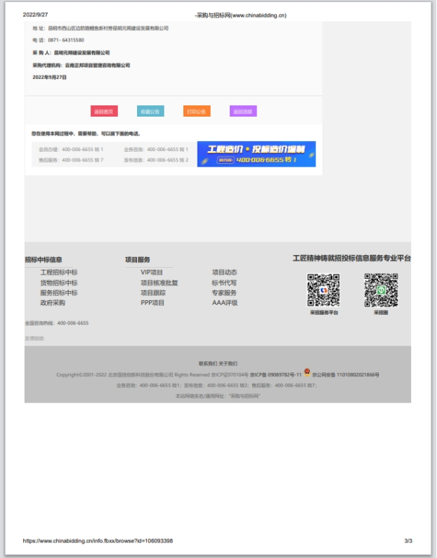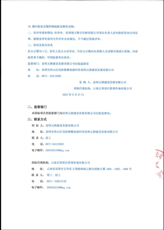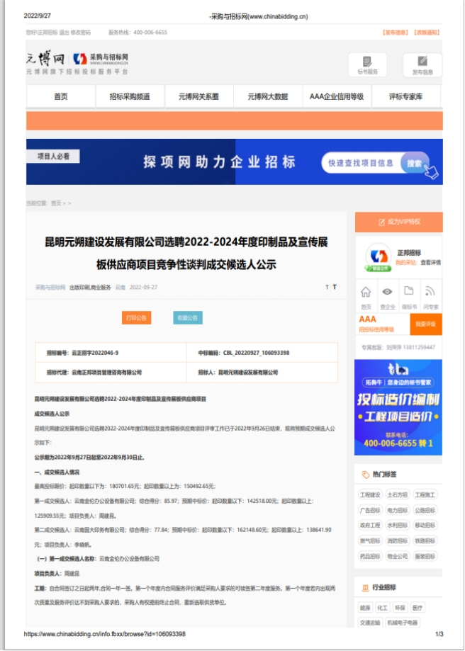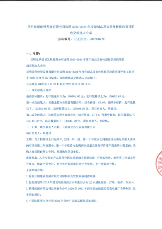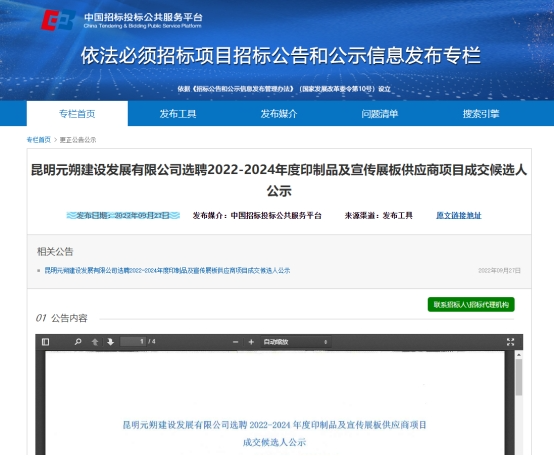 昆明元朔建设发展有限公司选聘2022-2024年度印制品及宣传展板供应商项目评标结果公示