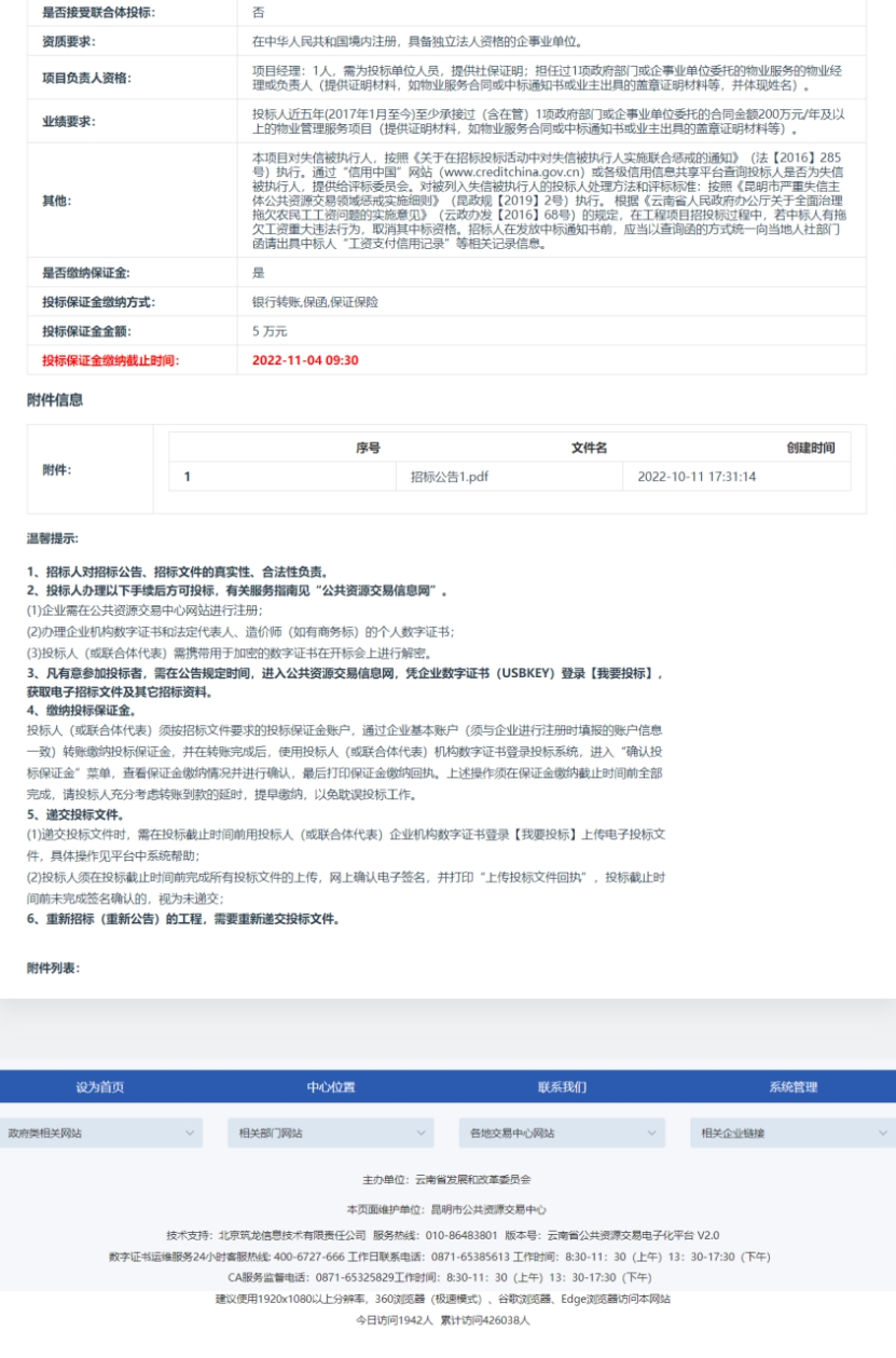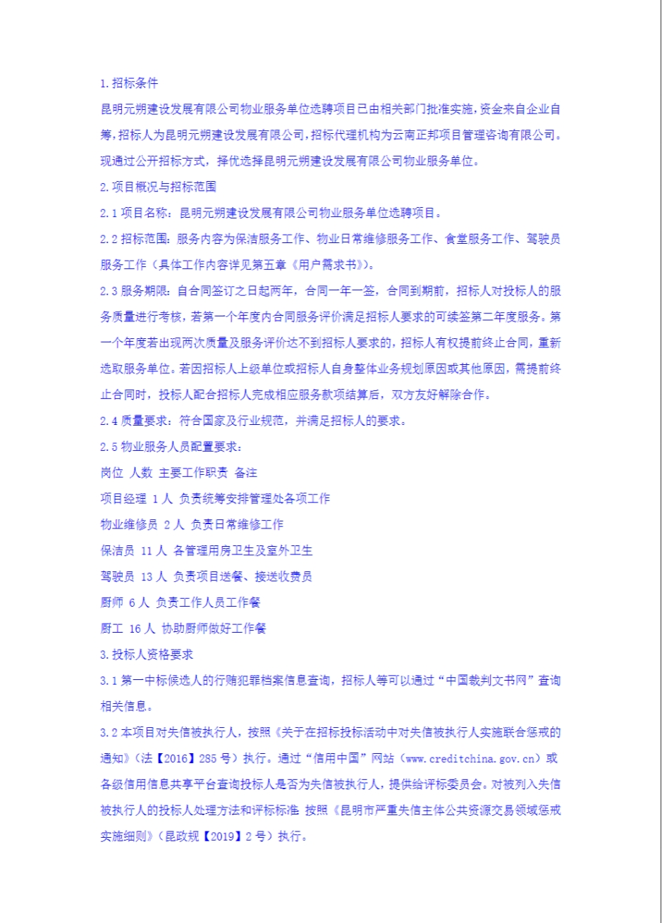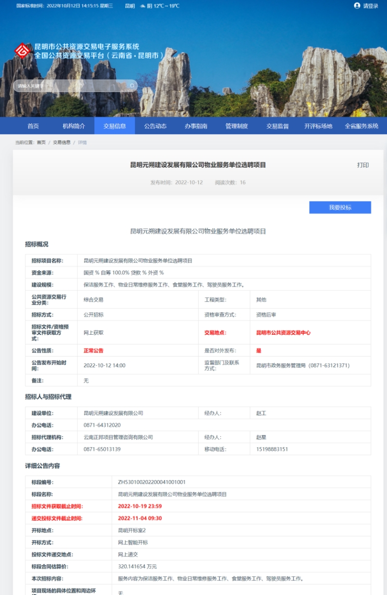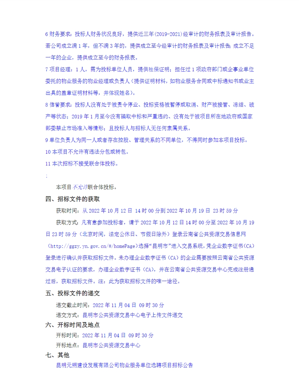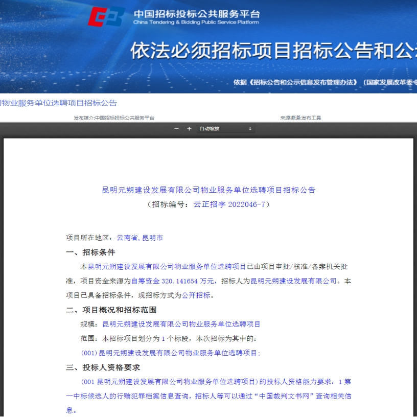 昆明元朔建设发展有限公司物业服务单位选聘项目招标公告
