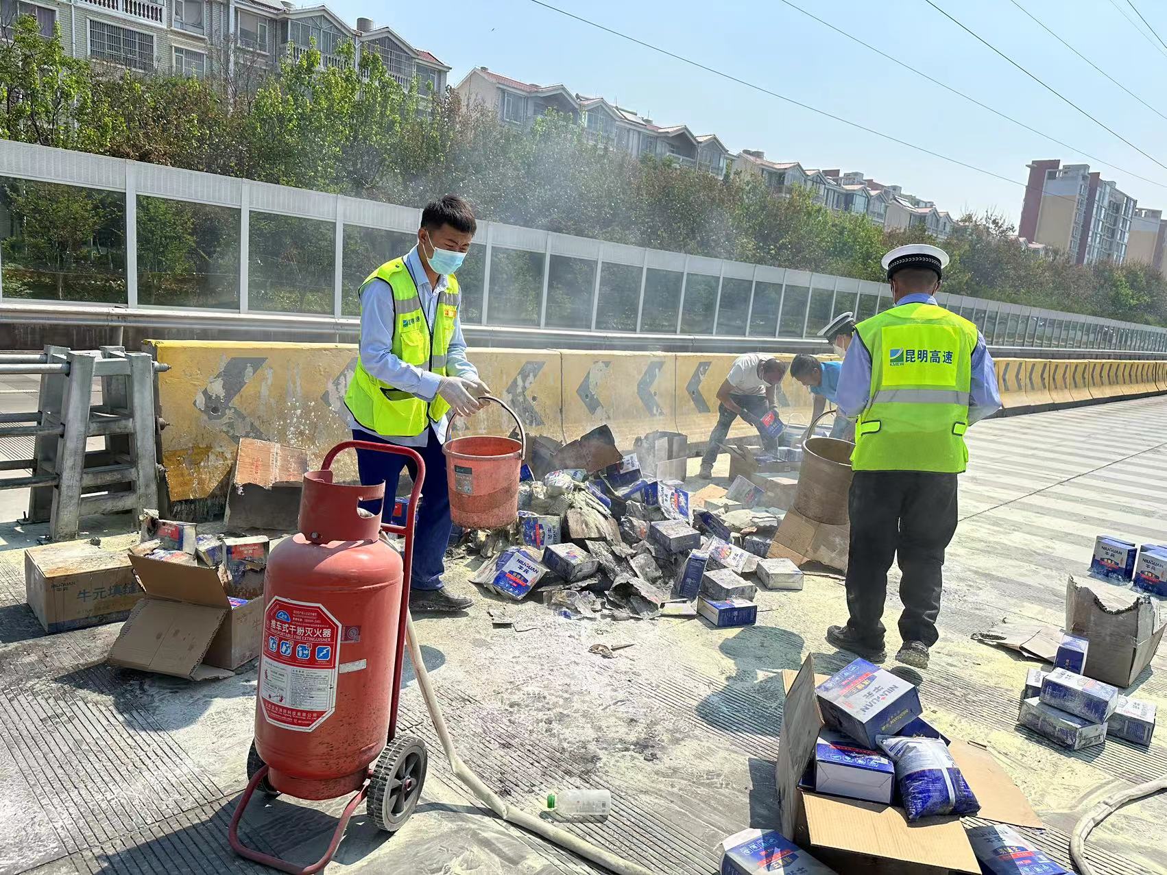 见火被扑灭,驾驶员才缓过神来,连声对现场的工作人员表示感谢“天气炎热干燥,我也不知道货物怎么就起火了,多亏有你们,否则不堪设想,谢谢收费员同志。”