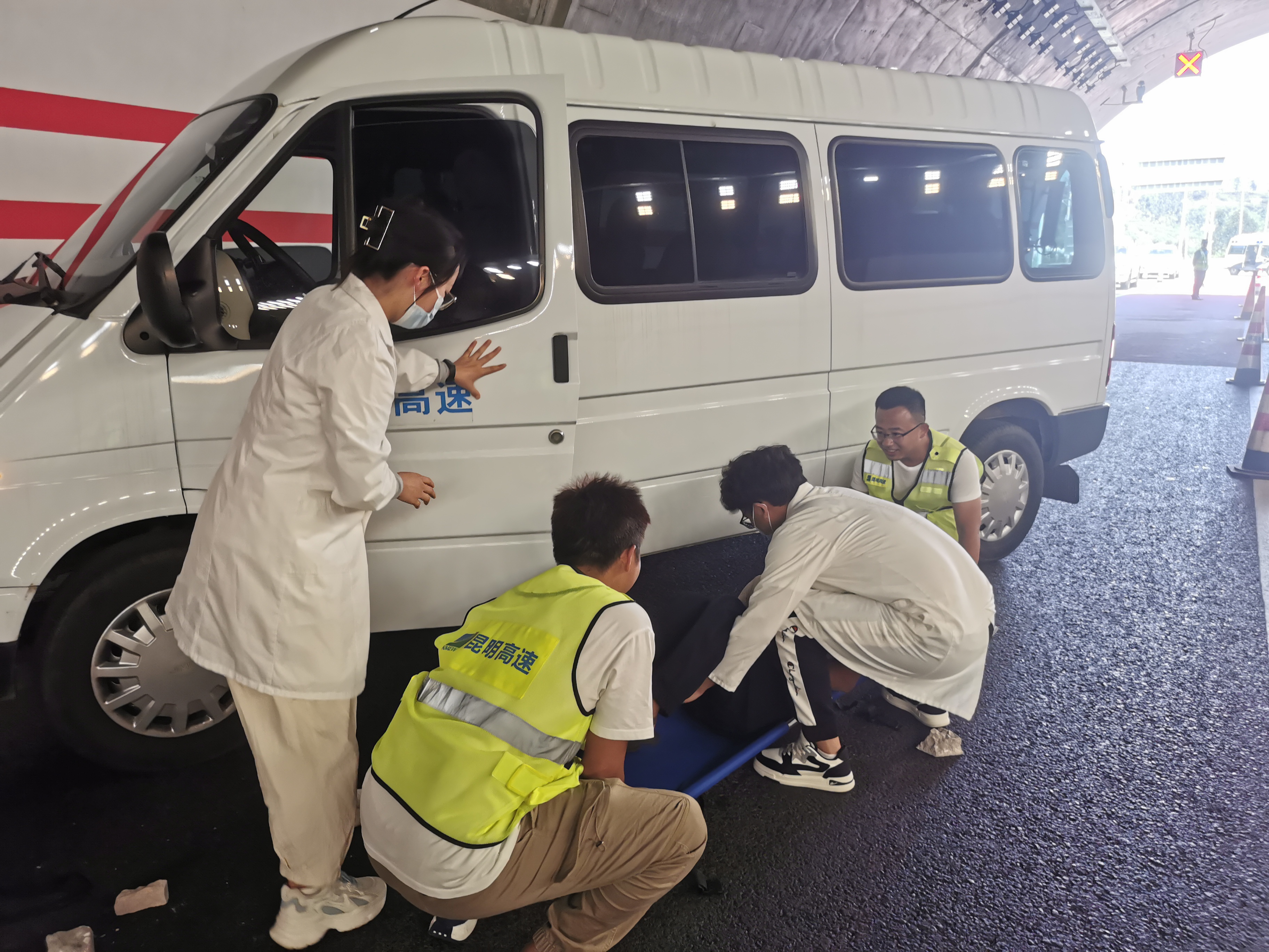 演练模拟一辆小车在隧道入口50米处与隧道边沟发生碰撞,造成单方交通事故,导致车辆驾驶员受伤昏迷,另一人腿部轻伤。公司启动交通事故应急救援预案,联动属地交警、路政等单位及时有效处置事故,恢复隧道通行。通过本次演练,检验了公司交通事故专项应急预案中规定的信息报告、预警、道路封闭和保通、现场人员抢救、现场清理、事故风险评估等环节的可操作性,为提高各单位联勤联动的快速反应能力和实战技能积累了宝贵的经验。