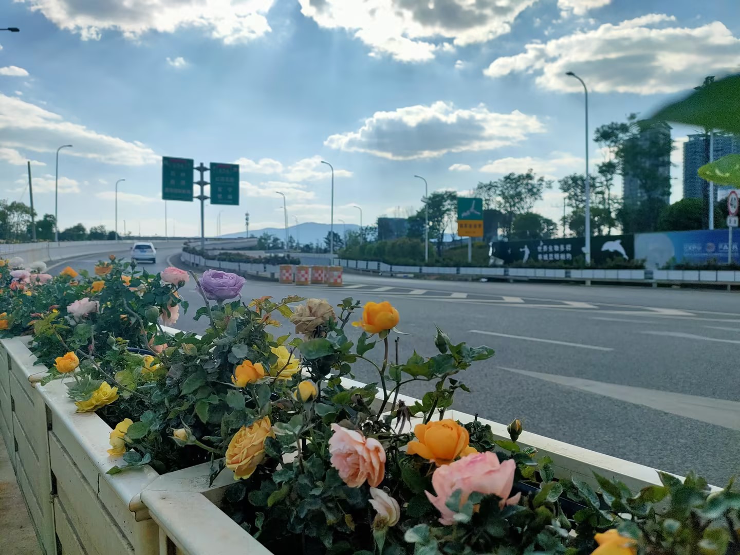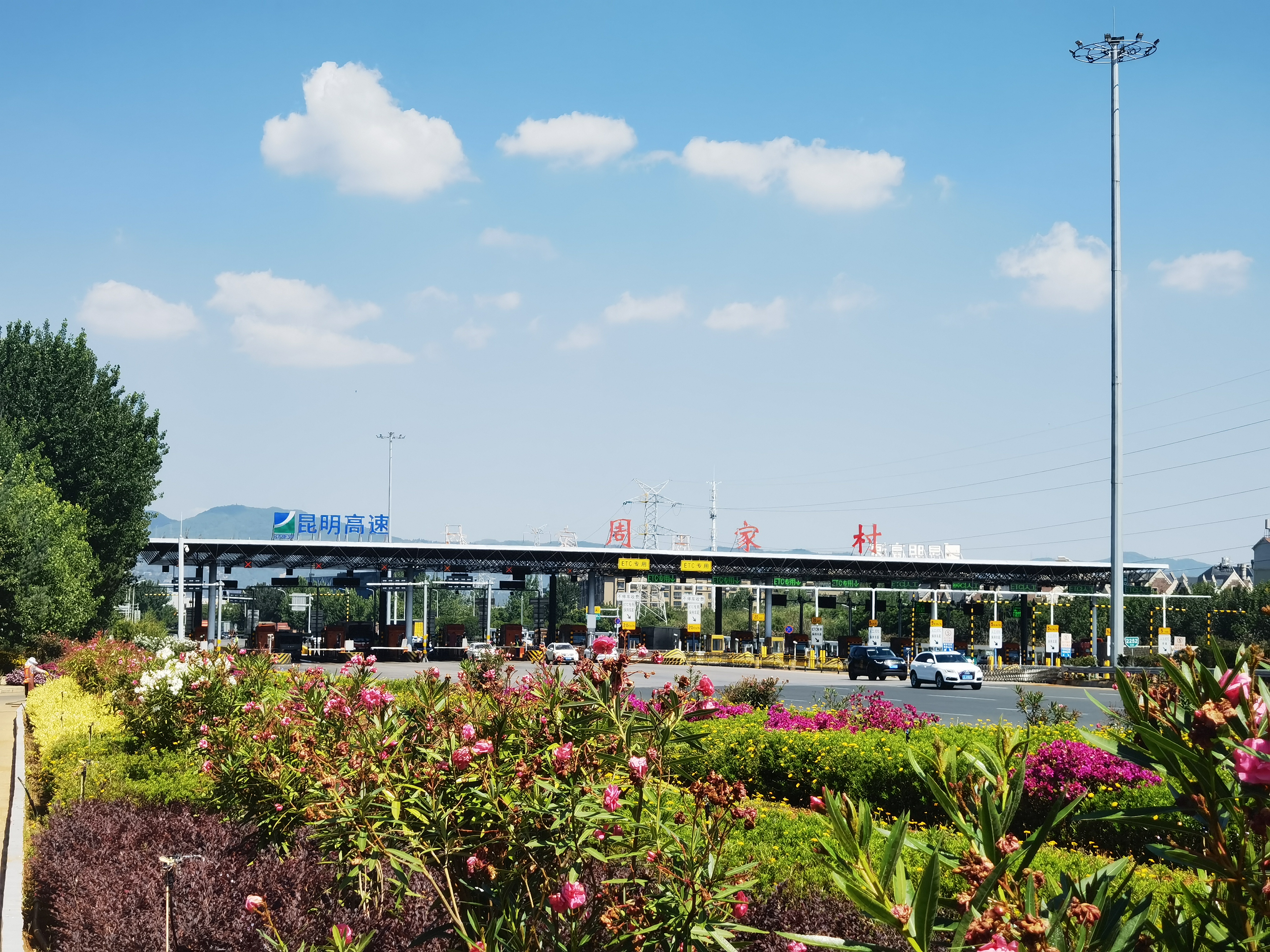 昆明南连接线高速公路将路域环境提升与示范道路创建等工作有机结合、相融互促,着力打造美丽舒适、绿色生态、安全畅通的路域环境。注重精细化管理,提升养护质量,逐步形成“一路有景、四季有花、层次分明、错落有致的生态文化景观”。通过安排保洁清扫人员不少于30人/天,出动清扫车每周不低于2车次,定期清洗隔音屏、波形板等附属设施,确保昆明南连接线高速公路全线卫生整洁;加强道路巡查力度,利用“智慧路网平台”提高养护精细化程度,及时消除各类道路隐患,确保全线附属设备正常运作;狠抓绿化养护工作落实,通过补种、增种植被,实现边坡绿化与自然生态协调和谐,根据植被长势、季节特点等特性,持续开展精细化养护,采取“人工养护和自动喷灌”相结合方式,通过科学合理管控,确保呈现优美靓丽的收费站立交匝道景观效果。