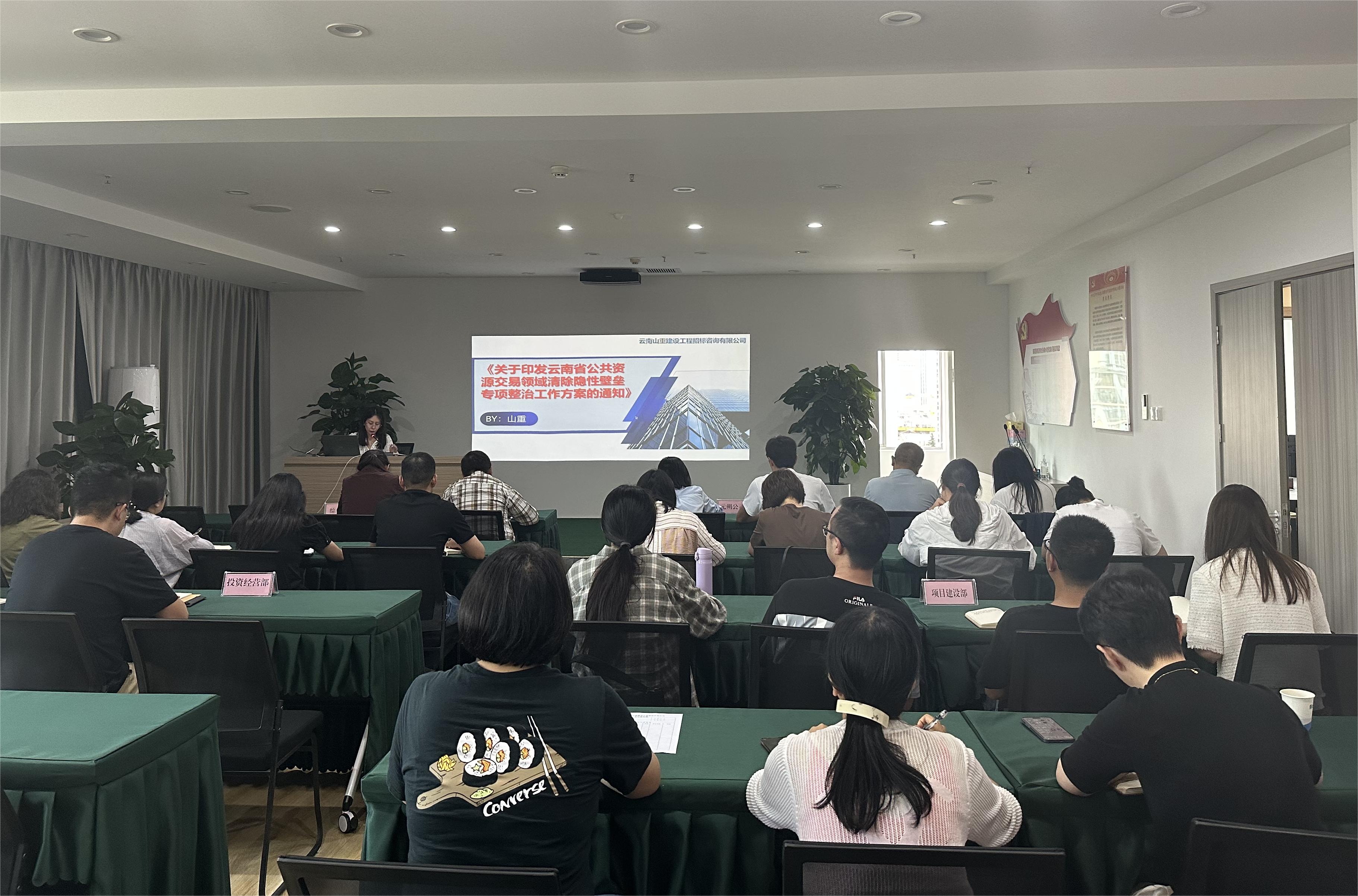 为进一步推进依法治企,加强公司招标业务管理,365在线体育投注官网,beat365在线体育于9月22日邀请云南山重建设工程招标咨询有限公司招标工程师为公司全体干部职工及子公司相关业务部门开展公共资源交易领域清除隐性壁垒相关业务培训。