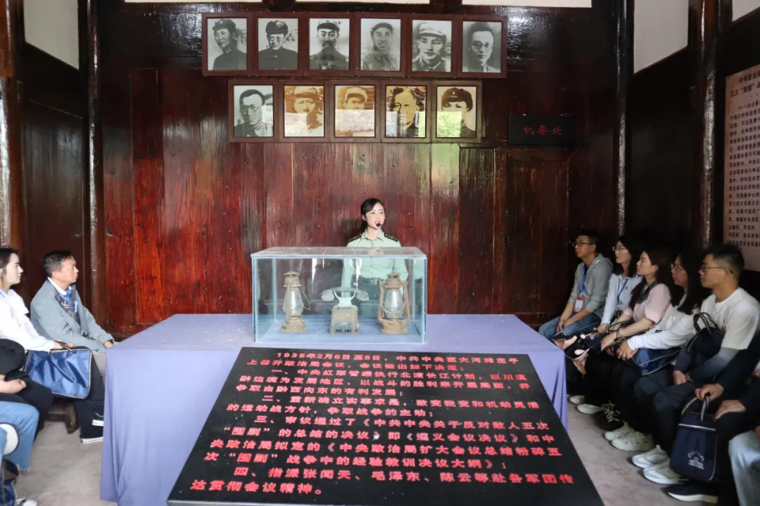 现场教学中,全体学员赴水田花房子中央政治局常委会会议会址、大河滩庄子上中央政治局会议会址、江西会馆中央政治局扩大会议会址、扎西会议纪念馆、扎西红军烈士陵园、红军长征标语馆、党的政治纪律和政治规矩主题教育馆、湾子民族团结示范村,探访红色足迹,向扎西红军烈士纪念碑敬献花圈,重温入党誓词,从一张张珍贵的历史图片、一件件文献实物和一句句文字记录中,追忆红军长征峥嵘岁月,重温那段光辉历史,从红色历史中汲取奋进力量。
