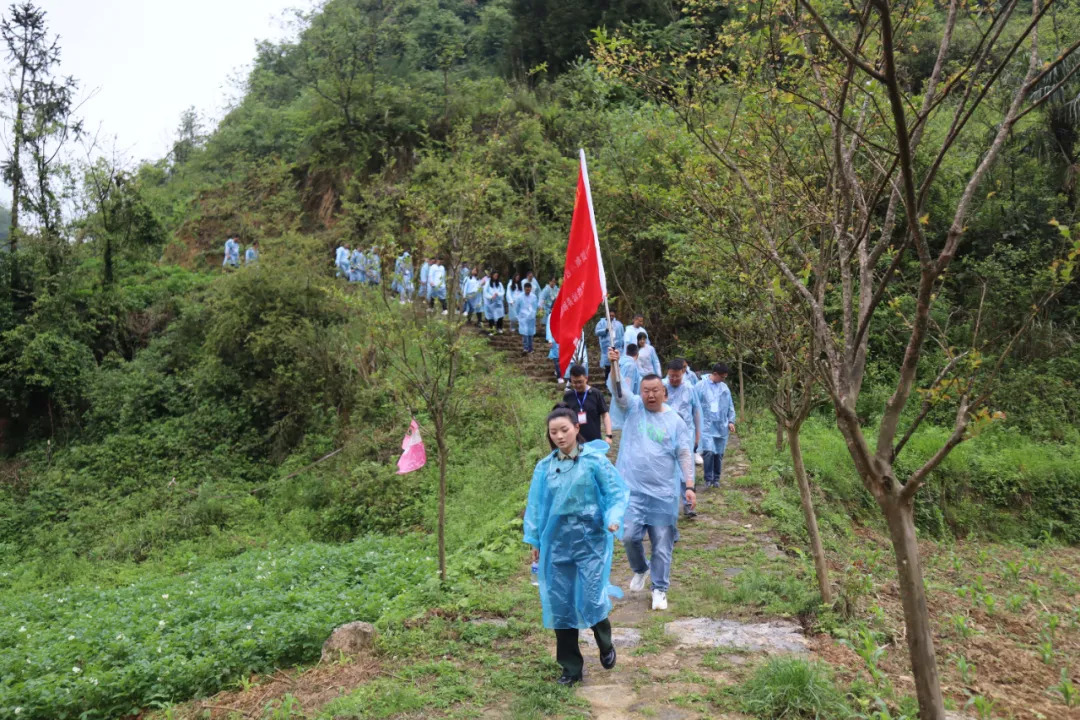 体验教学中,全体学员来到水田镇关口坳,重走长征路、再唱红军歌、自做红军餐。红军从这里走进云南,长征从这里走向胜利!大家斗志昂扬、喊着口号,跟随先辈的脚步,一路红歌嘹亮。全长4.2公里的青石步行道,蜿蜒盘旋在崇山峻岭间,红旗引领下的学员向山的深处挺进后到达湾子苗寨,深刻体悟革命先辈长征途中的艰难险阻,这一刻,全体学员精神得到洗礼,心灵得到震撼,灵魂得到触动,思想得到升华。