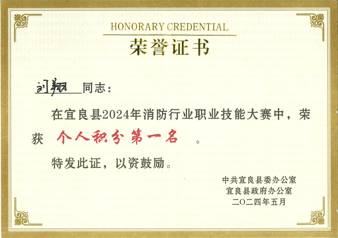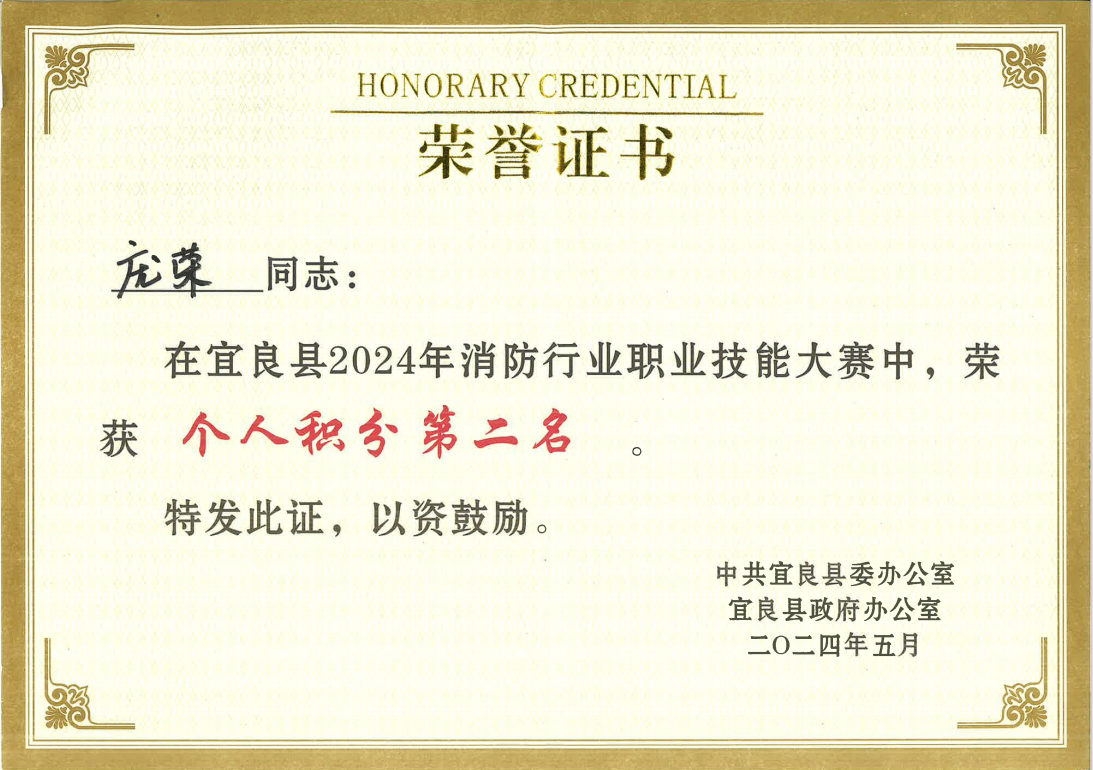 2024年5月17日,昆明东南绕城高速公路开发有限公司专职消防应急救援队在宜良县2024年消防行业职业技能大赛中荣获团体第一名、个人积分第一名、个人积分第二名的优异成绩。