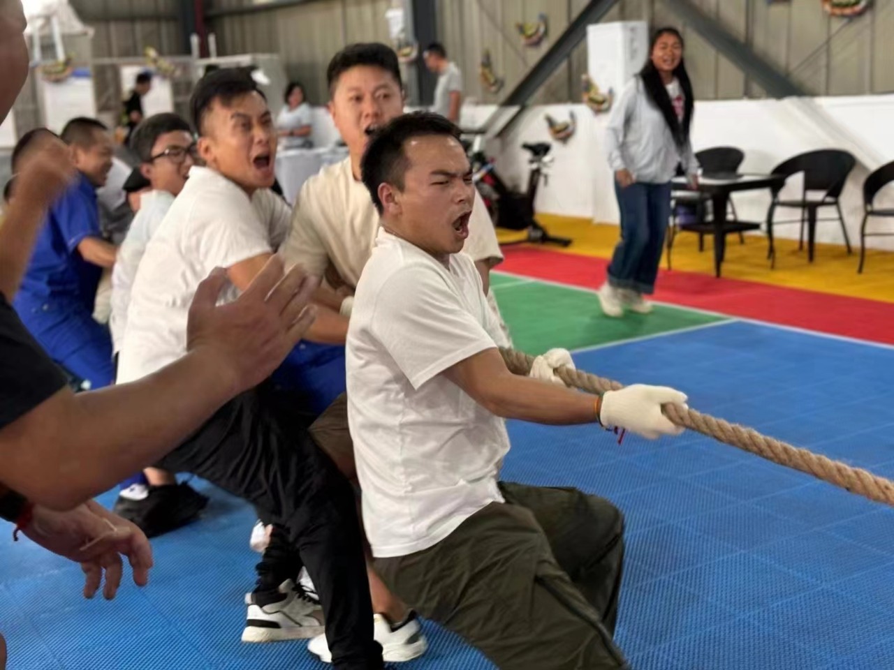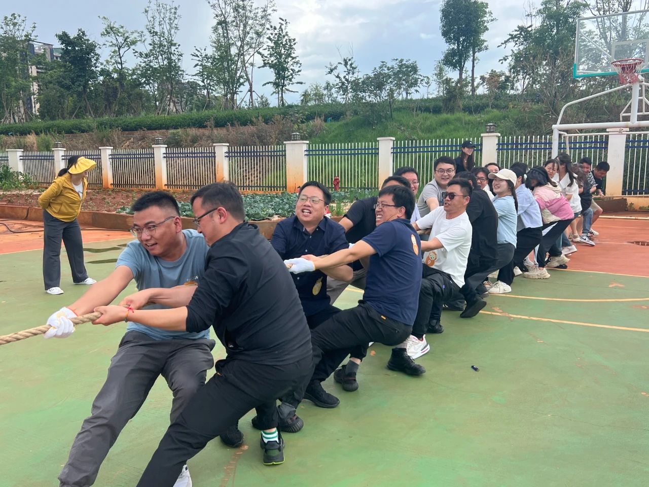 “加油、加油!”“快!快!快!”……团队比拼在一声声加油声中拉开了序幕,拔河、两人三足接力赛、接力投篮,参赛队员们斗志饱满、势如猛虎,啦啦队声震如雷、欢呼呐喊一浪高一浪,彰显出敢闯敢拼、精诚团结的拼搏精神,昂扬了坚韧不拔、顽强拼搏的运动精神。
