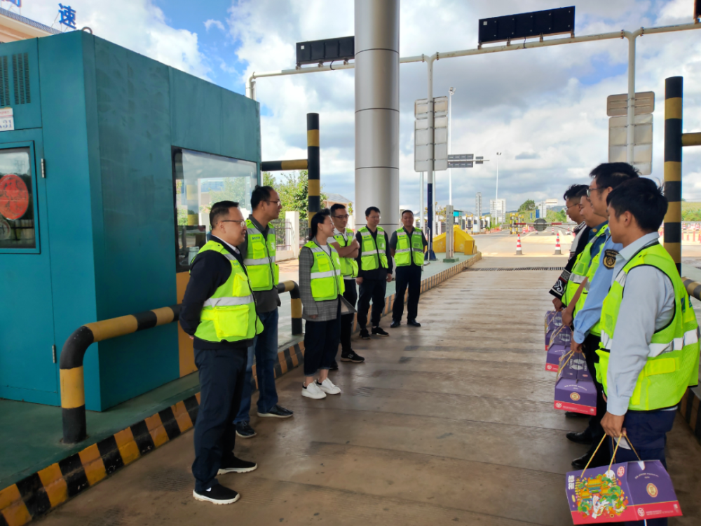 在各个收费站点,公司领导与一线员工进行亲切交谈,对他们的辛勤付出表示感谢;细致了解节日期间各站点车流量、人员安排、后勤保障等方面的情况。勉励在岗员工坚守岗位、认真履职,把好“安全关”“防汛关”“保通关”,确保节日期间道路安全畅通,为公众提供优质、便捷的出行体验。