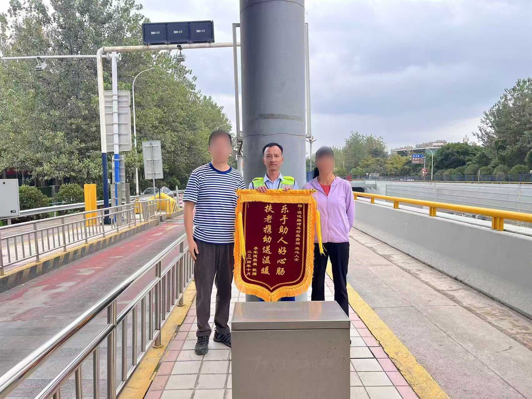 2024年10月20日,李先生一家带着一面锦旗来到365在线体育投注官网,beat365在线体育下属元朔公司,感谢昆明南连接线高速公路河尾村收费站对其父亲的热心帮助和细心照顾。