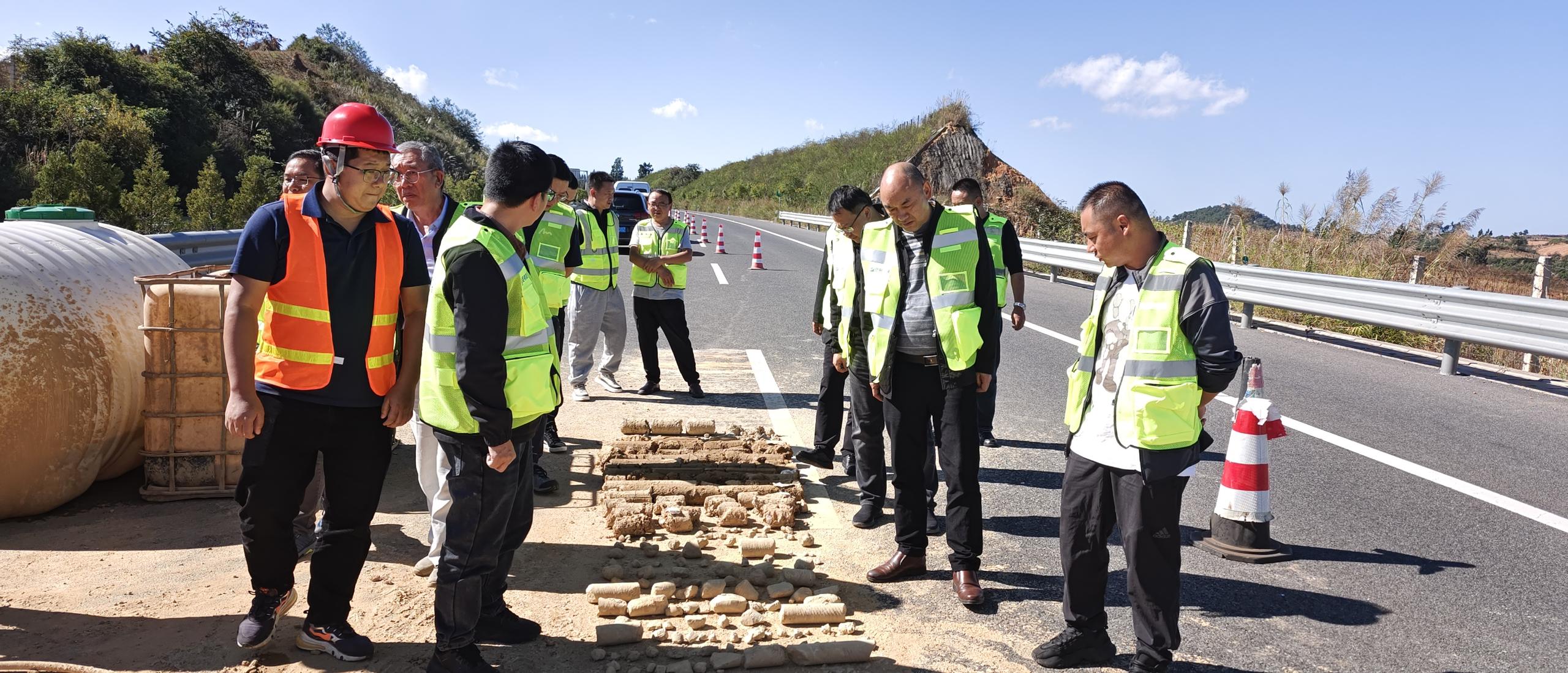 在宜石高速山冲箐隧道路面渗水现场,调研组指出要贯彻落实道路养护规范制度,深刻认识路面渗水的危害性,并提前部署、精准谋划,确保在气温降低前完成处治工作。同时,要加强信息联动,做好安全提示、警示工作,保障过往司乘人员的生命安全。