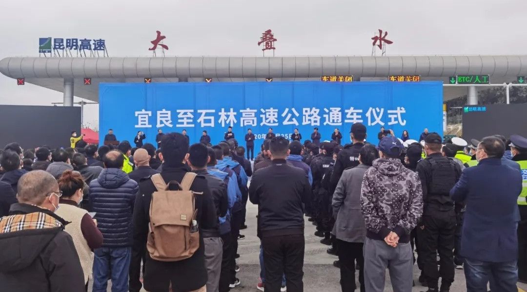 - 2020年12月25日上午10:30分,宜良至石林高速公路通车仪式在大叠水收费站举行,昆明市副市长高中建现场宣布宜良至石林高速公路正式通车。