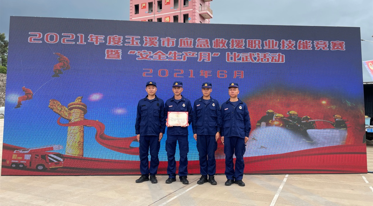 - 6月28日至29日,东南绕公司专职消防应急救援队在玉溪市举办的“2021年度玉溪市应急救援职业技能竞赛”中荣获“手抬机动泵出水操项目”第一名。