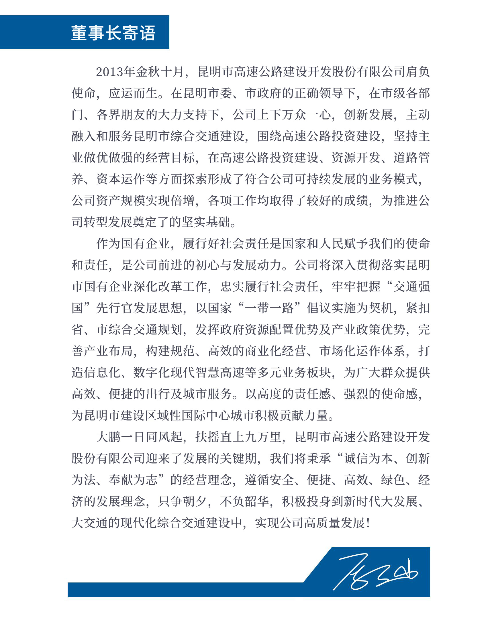 - 2013年金秋十月,昆明市高速公路建设开发股份有限公司肩负使命,应运而生。在昆明市委、市政府的正确领导下,在市级各部门、各界朋友的大力支持下,公司上下...