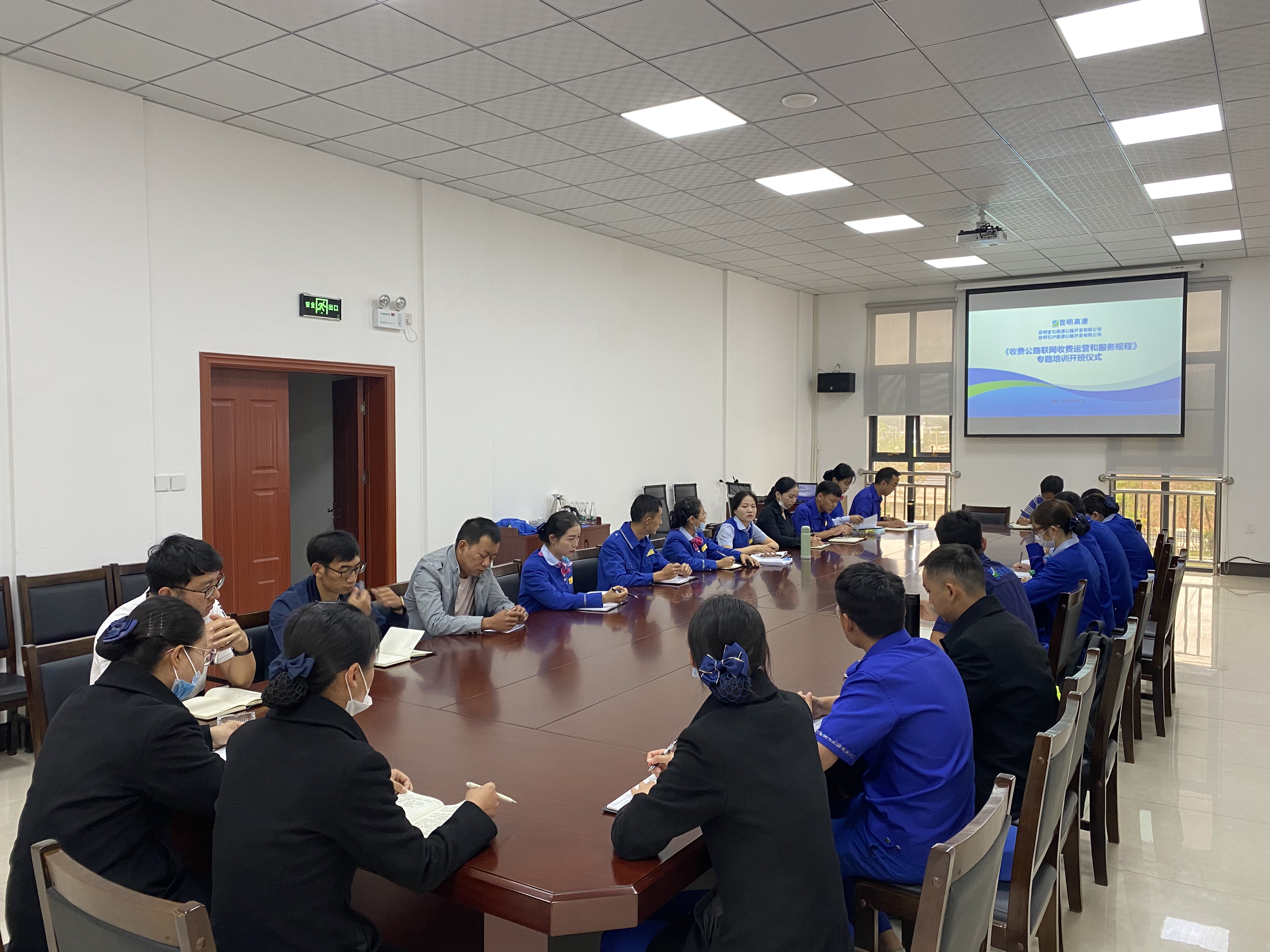 6月10日邀请云南公路联网收费管理有限公司的刘远和尹红艳老师对站级管理人员及各收费班班长进行了ETC发行办理业务培训。