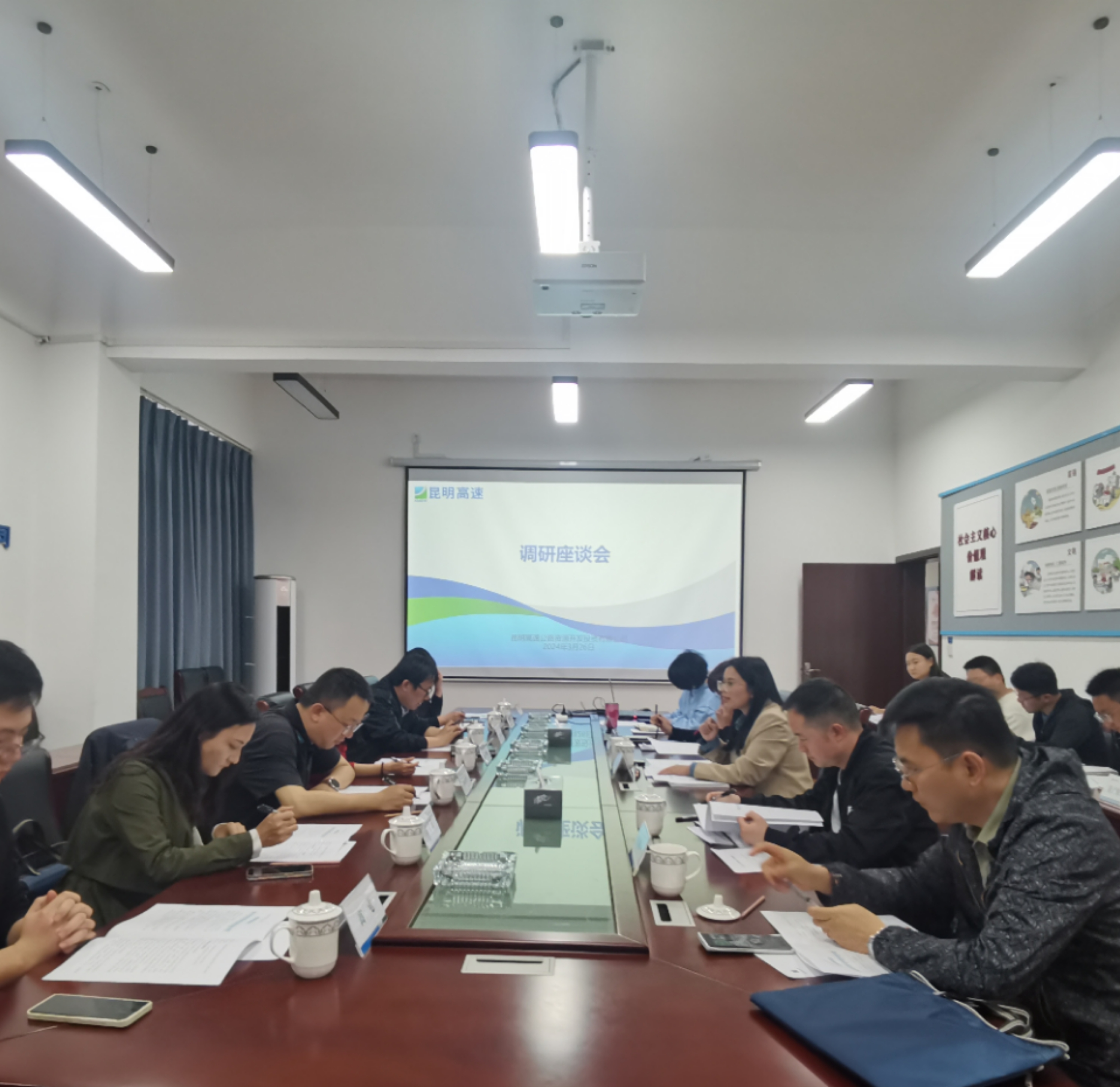 - 调研组先后至昆明南连接线周家村收费站、昆明南连接线永胜隧道等调研,并通过座谈的形式了解各子公司年度重点工作推进情况,提出工作要求。