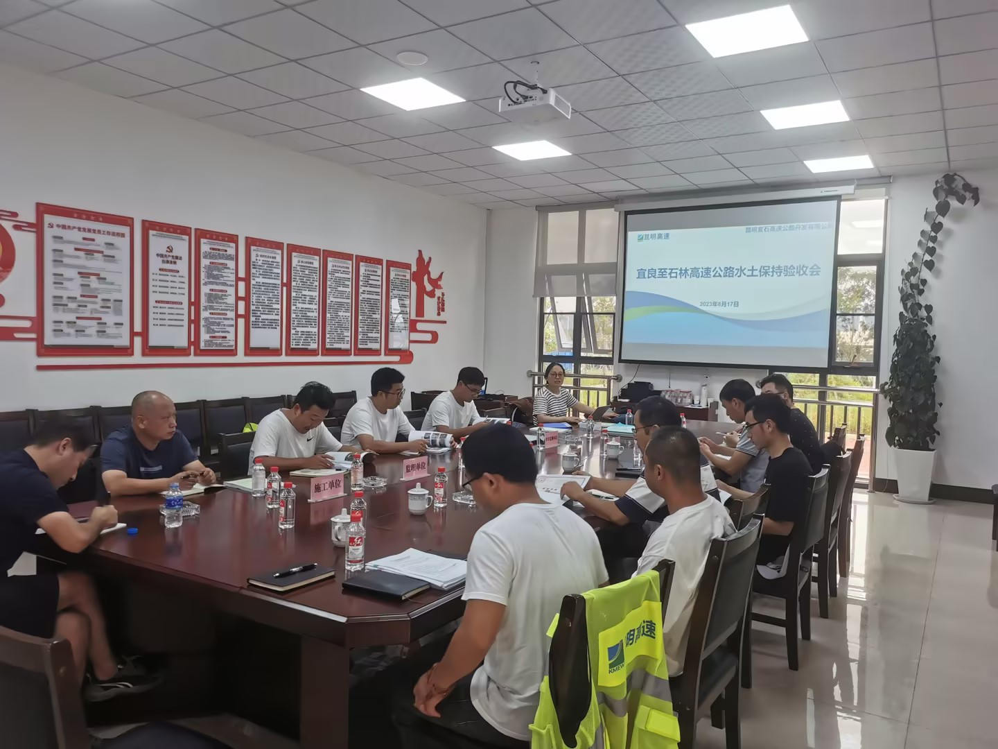 - 8月17日,昆明宜石高速公路开发有限公司组织设计单位、施工单位、监理单位、水土保持监测单位、水土保持变更单位、水土保持验收编制单位及3位特邀专家对宜良至石...