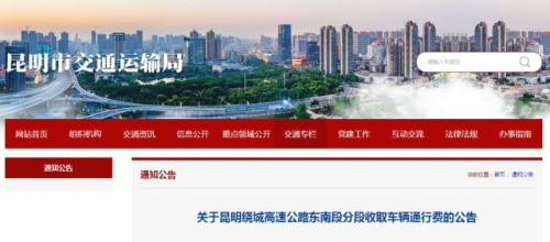 据昆明市交通运输局,根据《云南省人民政府关于同意昆明绕城高速公路东南段收取车辆通行费的批复》(云政复[2017]73号),昆明绕城高速公路东南段项目起点(小龙...